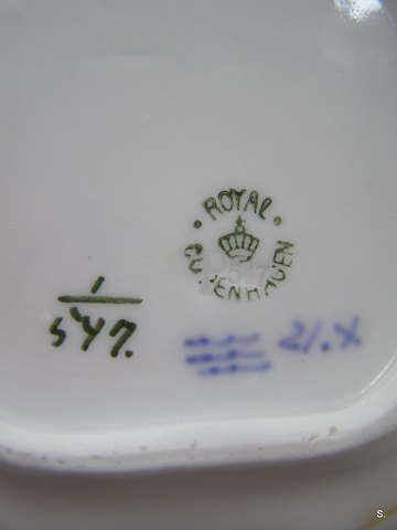 RC Musselmalet Halvblonde Fad bladformet 1.sort. L:18,5cm. Emne nummer: 10908