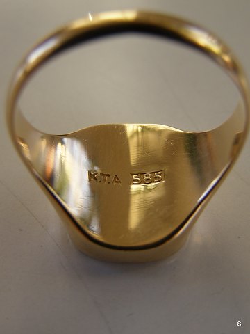 Herre Ring med sort sten/Onyx 585 guld stemplet K.T.A. Knud Thøger Andersen Åbyhøj D: 2,1 cm. 63/64 Emne nummer: 10968