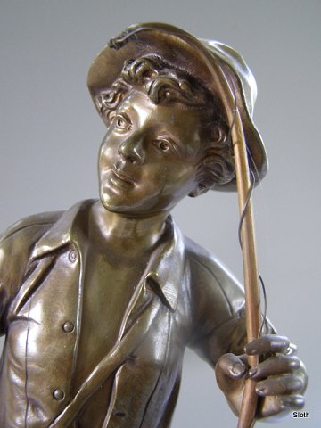 Dreng i Bronze med Fisk og Fiskestang sign G. Omerth (Georges Omerth 1895-1925 Frankrig) H: 39,5 cm. Emne nummer: 11724