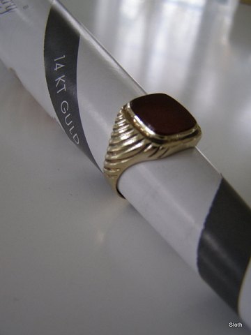 Herrering 8 kt. med Karneol ringstr. 63 D: 2 cm.