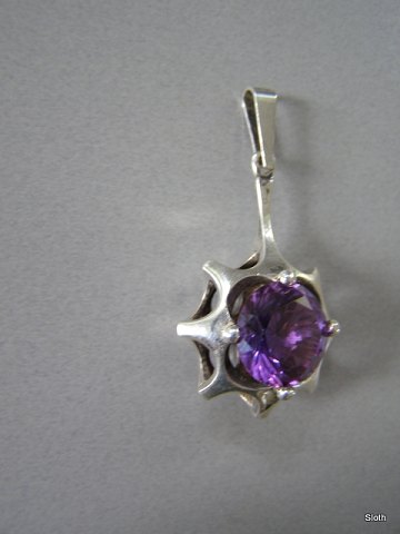 SOLGT Vedhæng 925 S med Ametyst, Hermann Siersbøl L: 4,2 cm. Emne nummer: 11908