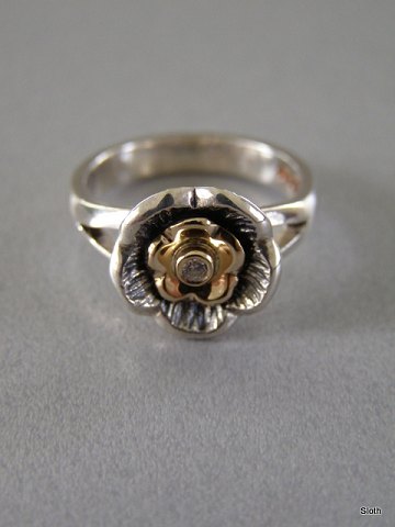 Fingerring i Sølv 925 m. Blomst i Guld 585