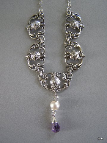 Halssmykke 925 9 g. Med Akoya Perle og Ametyst L: 46 cm Emne nummer: 11991