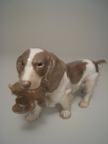 Bing & Grøndahl, 2061 Spaniel med agerhøne i mund, l-25 h-14,5, Lauritz Jensen