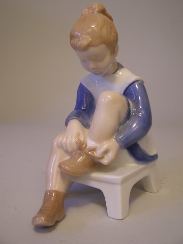 Bing & Grøndahl, 2373 Pige på skammel snører sine sko , h:14,5 cm