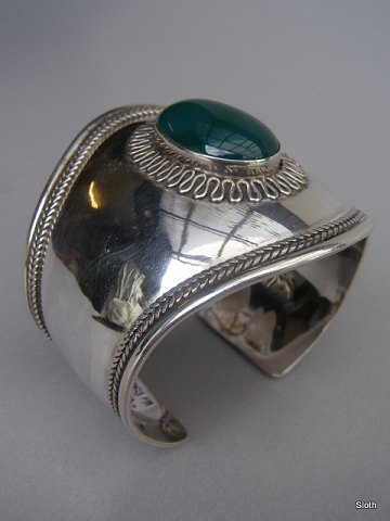 Bred Armring m. Stor Oval grøn Sten