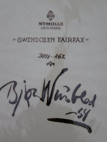 Bjørn wiinblad, 1918-2006, Oval platte, "Gwendolen Fairfax" Nymølle 3071-462, sign. Bjørn Wiinblad 1954, l:35 b:29