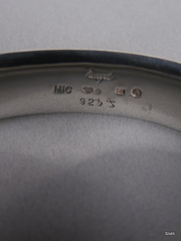 Sølvarmring 925 S. Michelsen Stockholm design Gertrud Engel med Krysopras D: 5,5-6,0 cm.