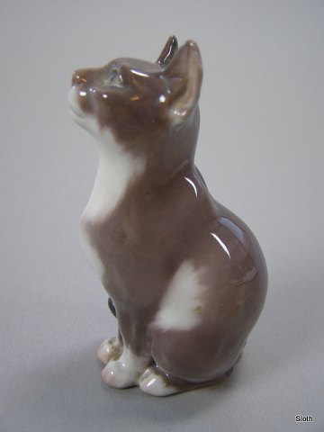 Dahl Jensen 1329 Siddende Kat 1. Sort. H: 9,5 cm.