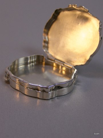 Pilleæske 925 S. H: 1 cm. L: 4,5 cm. B: 4 cm. Emne nummer: 18032