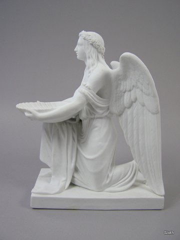 SOLGT B&G Dåbens Engel H: 23,5 cm. L: 20 cm. Bisquit efter Thorvaldsen i Vor frue Kirke København Emne nummer: 18049
