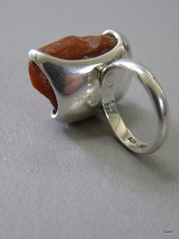 Fingerring 925 S. med Rav Str. 51 stemplet WM Emne nummer: 19097