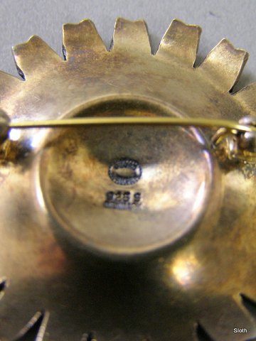 Georg Jensen Marguerit Broche i forgyldt Sølv 925 D: 4,3 cm. Emne nummer: 20005