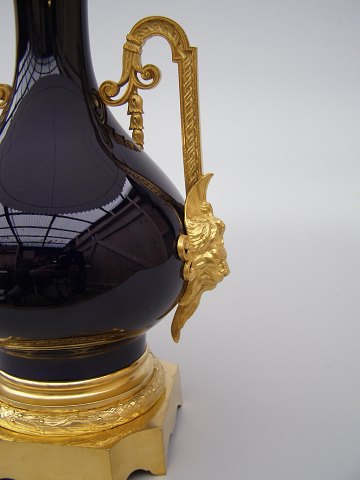 Fransk bordlampe af porcelæn med påsat broncemontering, h:66 med skærm