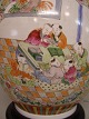 Et par store bordlamper på stand af træ, bemalet med figurer, H: 58cm. der er desværre en brændingsfejl som det fremgår af billeder