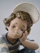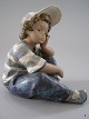 Lladro Siddende tænksom dreng med kasket H: 21 cm.
