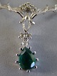 Halssmykke 925 S med grøn sten og Syntetiske Brillanter Kædens L: 36 cm.