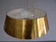 A.J. Pendel af messing, med wireophæng, hvidlakeret indvendig og midterdel med klar glaskuppel pæreformet H: 24 cm. D: 48 cm. Emne nummer: 12015