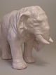 En stor hvid glaseret elefant af keramik sign. L. Hjorth h:32 l:44