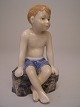 Royal Copenhagen, 682 Dreng siddende på en sten 1.sort. H: 14,5