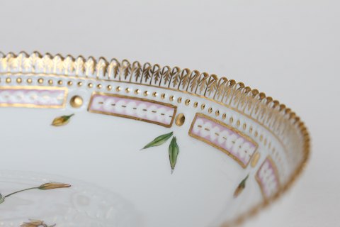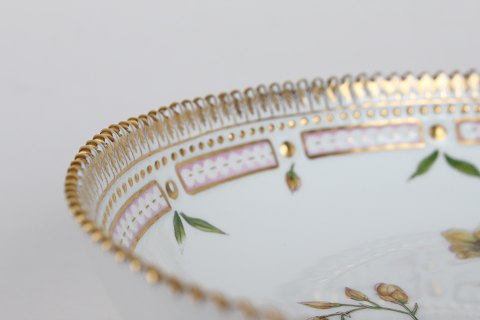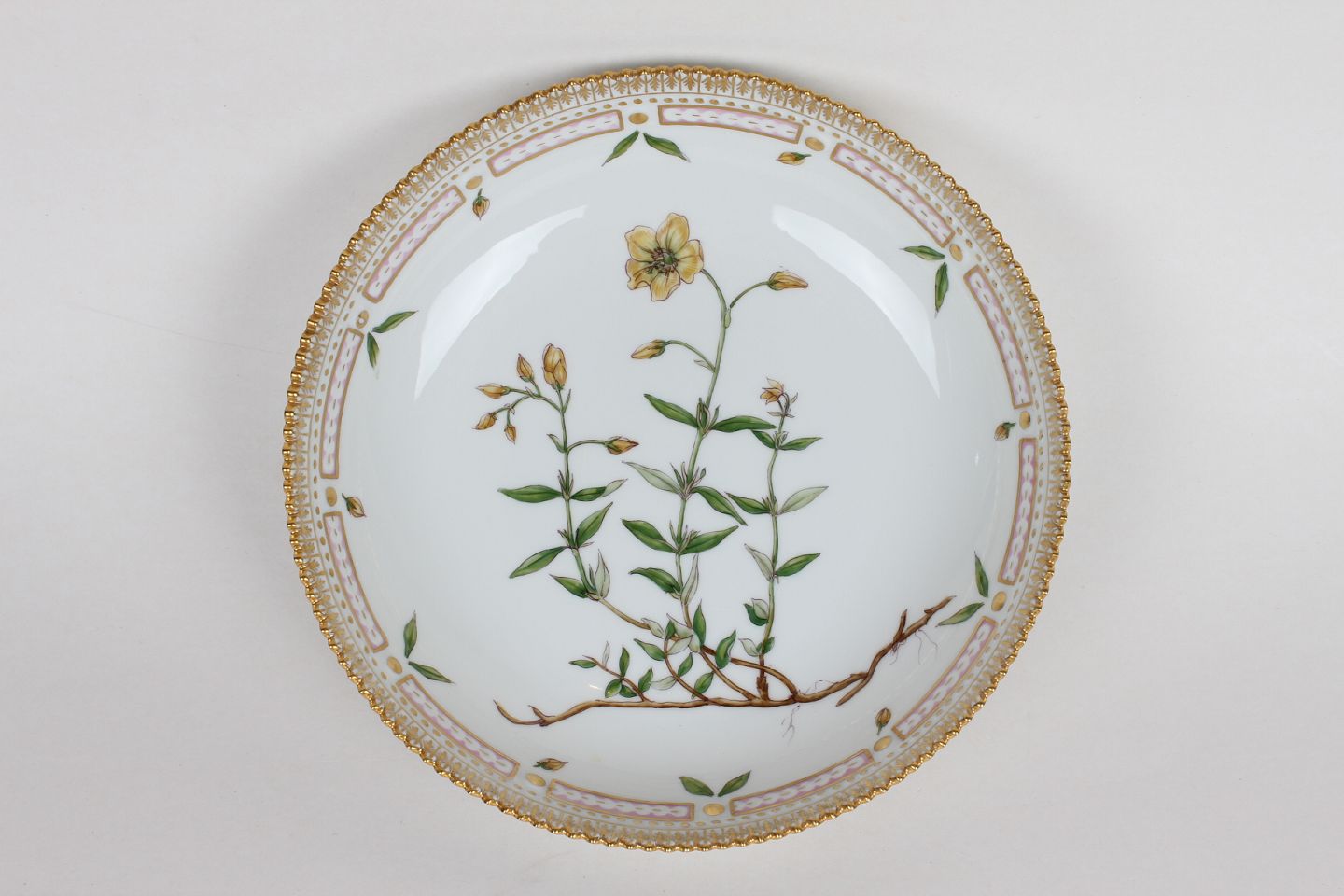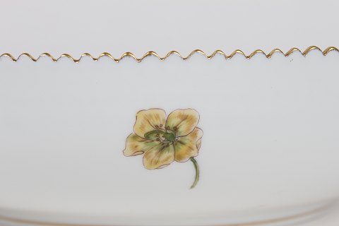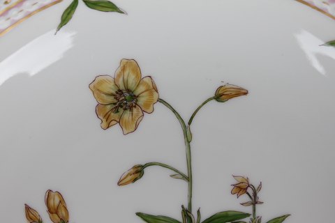 Rund skål med håndmalede blomster nr. 3503 "Cistus Helianthemum L" Diameter 21 cm - højde 5 cm 1. sortering - fin stand uden skår eller revner