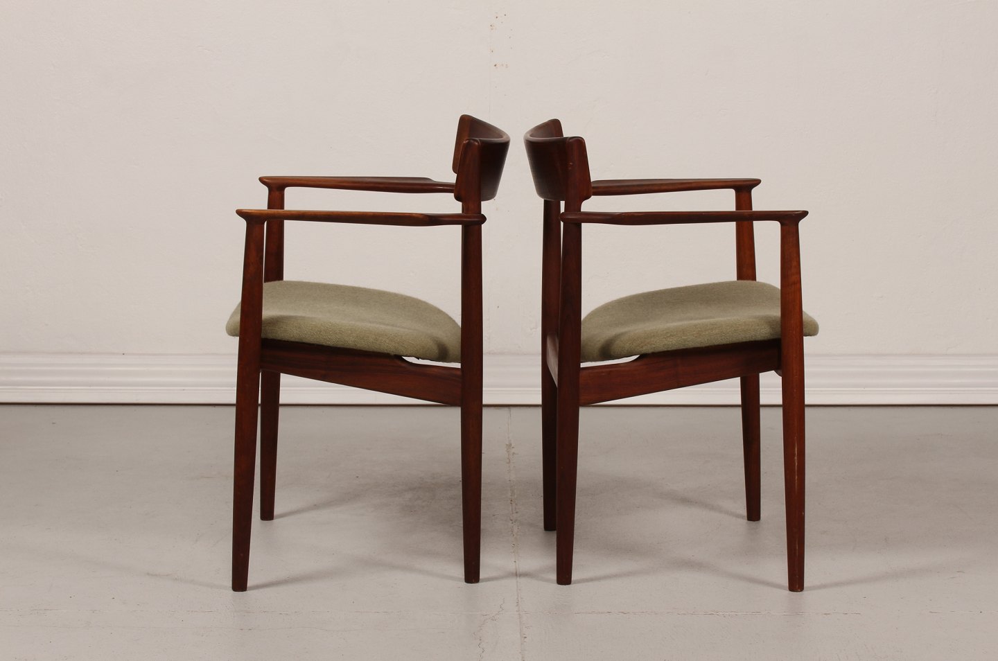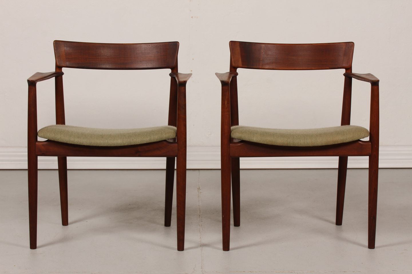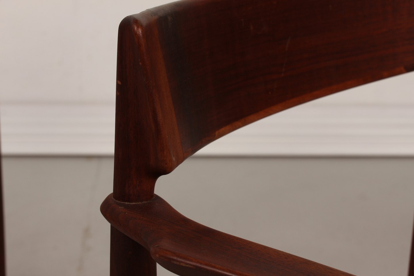 Henry Rosengren Hansen 2 Diningchairs with armrest made of walnut Manufactor: Brande Møbelindustri Depth: 49 cm Width: 61 cm Height: 75/44 cm Nice vintage condition