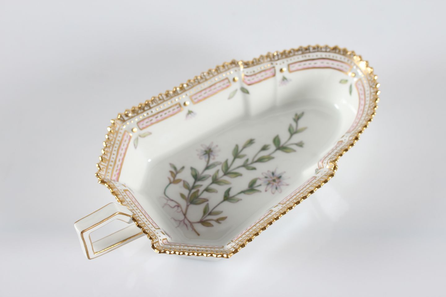 Royal Copenhagen Flora Danica Oblong serving Dish model 3543 with flower decoration "Stellaria humifusa Rottb" With Stamp from the period 1969-74 Lenght 18 cm Width 10 cm Mint condition 1. quality