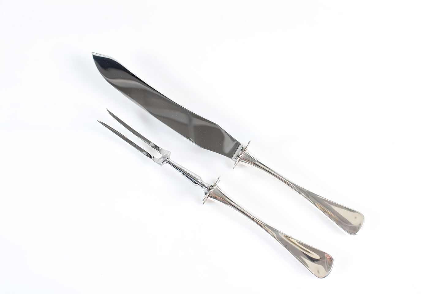 Patricia Silver Flatware Patricia Flatware after design by Knud Møller made at Horsens Sølvvarefabrik Carving knife and fork set. Length 30 + 27,5 cm Nice vintage condition without engraving