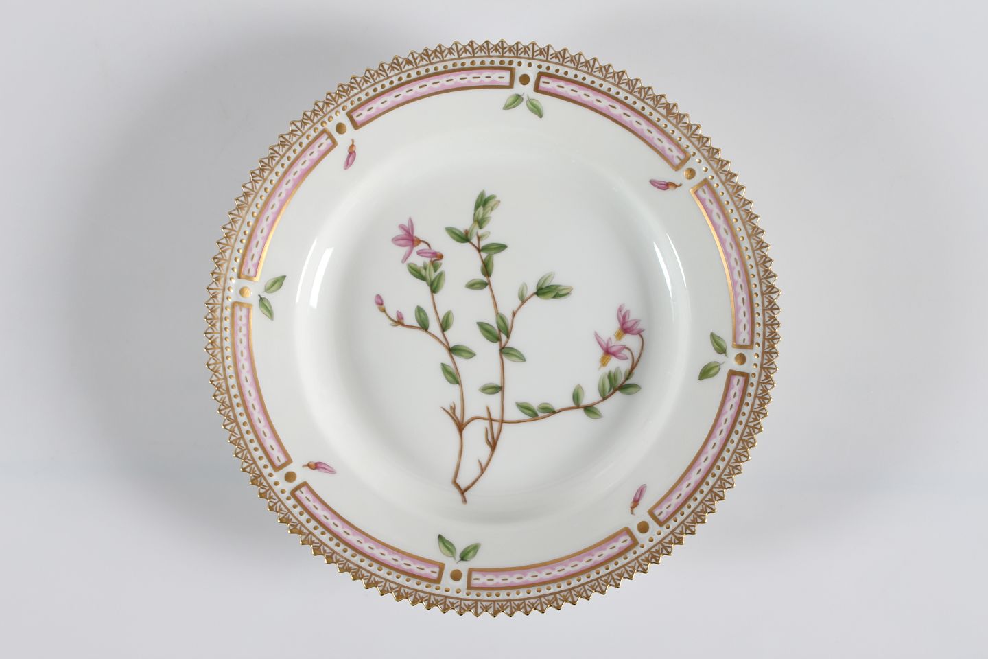 Royal Copenhagen Flora Danica Large tea plate with serrated rim no 3551 Decorated with flower "Oxycoccus palustris rupr." Diameter 17 cm Factory 1 without chips or cracks
