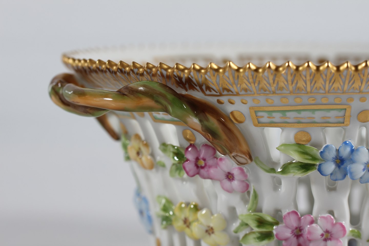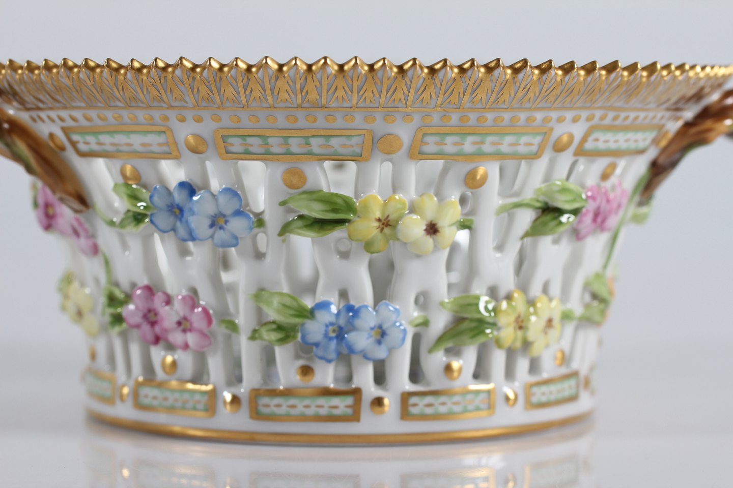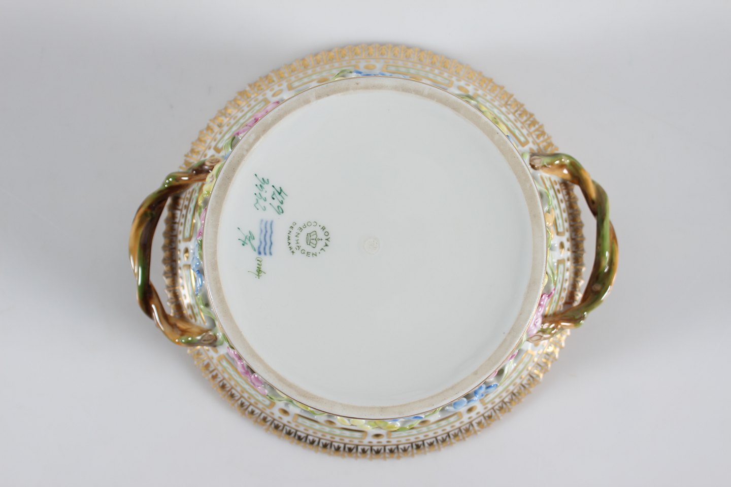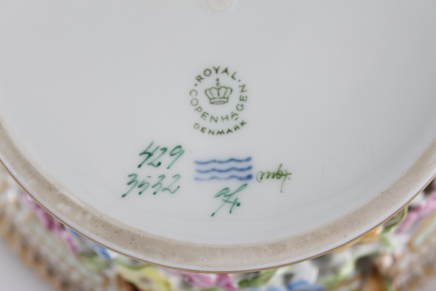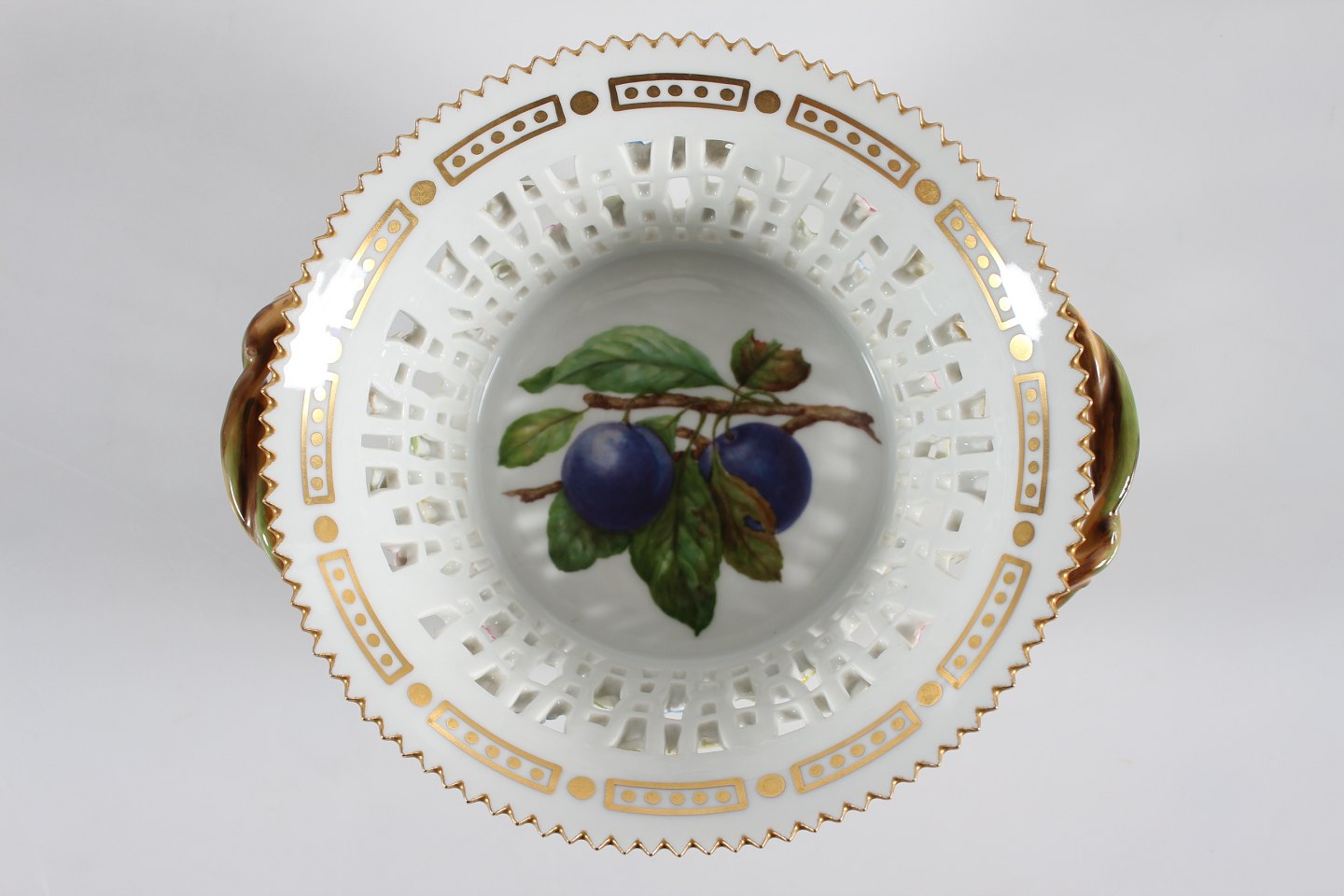 Royal Copenhagen Flora Danica Frugtskål med takket kant og gennembrud model nr. 3532 dekoreret med kræg blommer Dette eksemplar med stempel fra 1962 Bredde 21,5 cm Diameter 19 cm Højde 8,5 cm Fin fejlfri 1. sortering