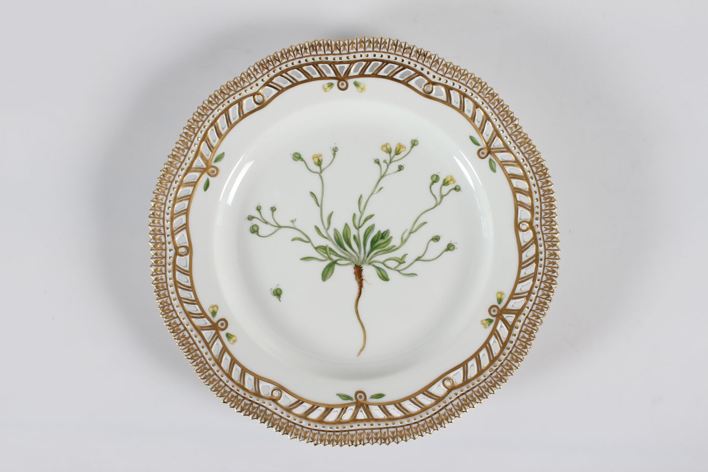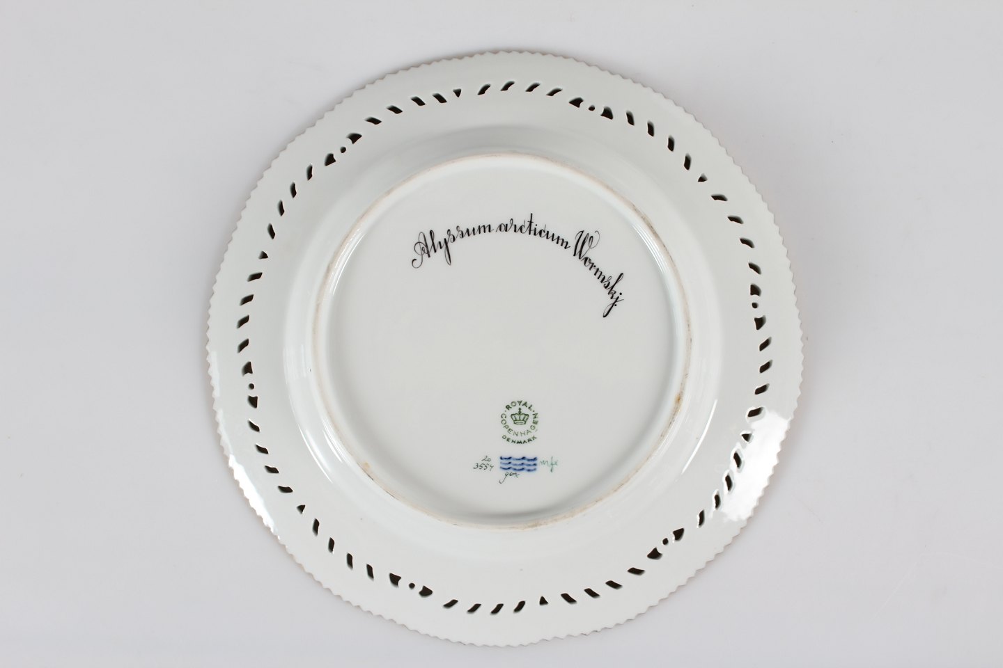 Royal Copenhagen Flora Danica Frokosttallerken med gennembrudt og takket kant model nr. 20/3554 Dekoreret med blomst "Alyssum arcticus Wormsky." Med stempel fra perioden 1969-74. Diameter 22,5 cm Fin fejlfri 1. sortering