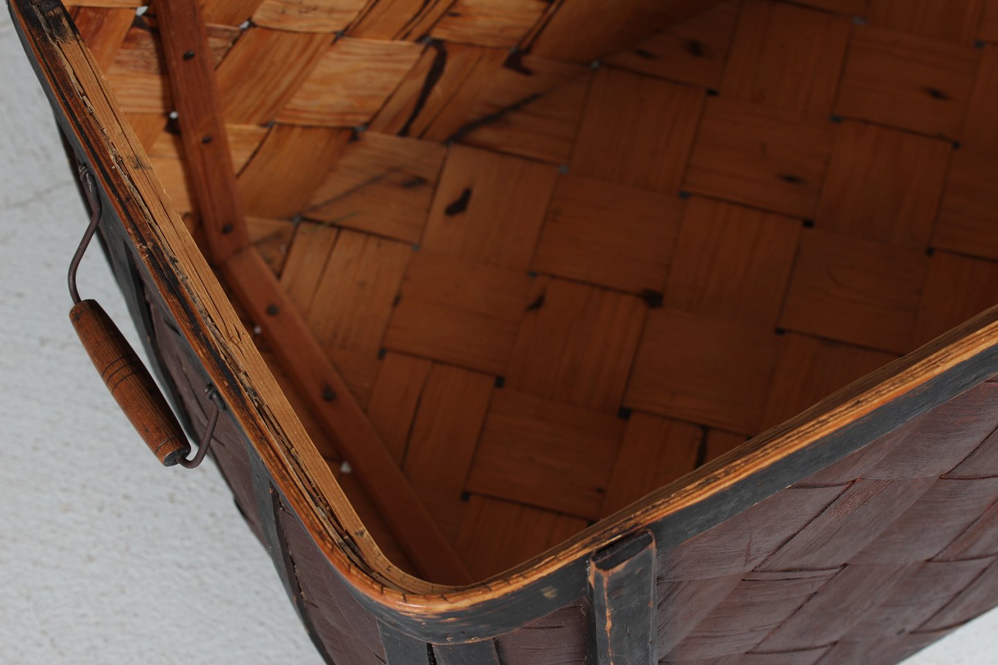 fremstillet af brede træspån, brunfarvet med sorte lister håndfremstillet ca. år 1900