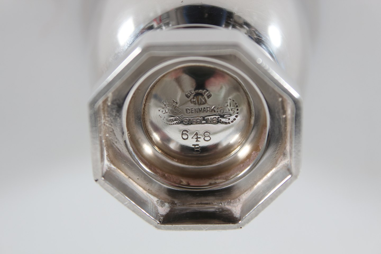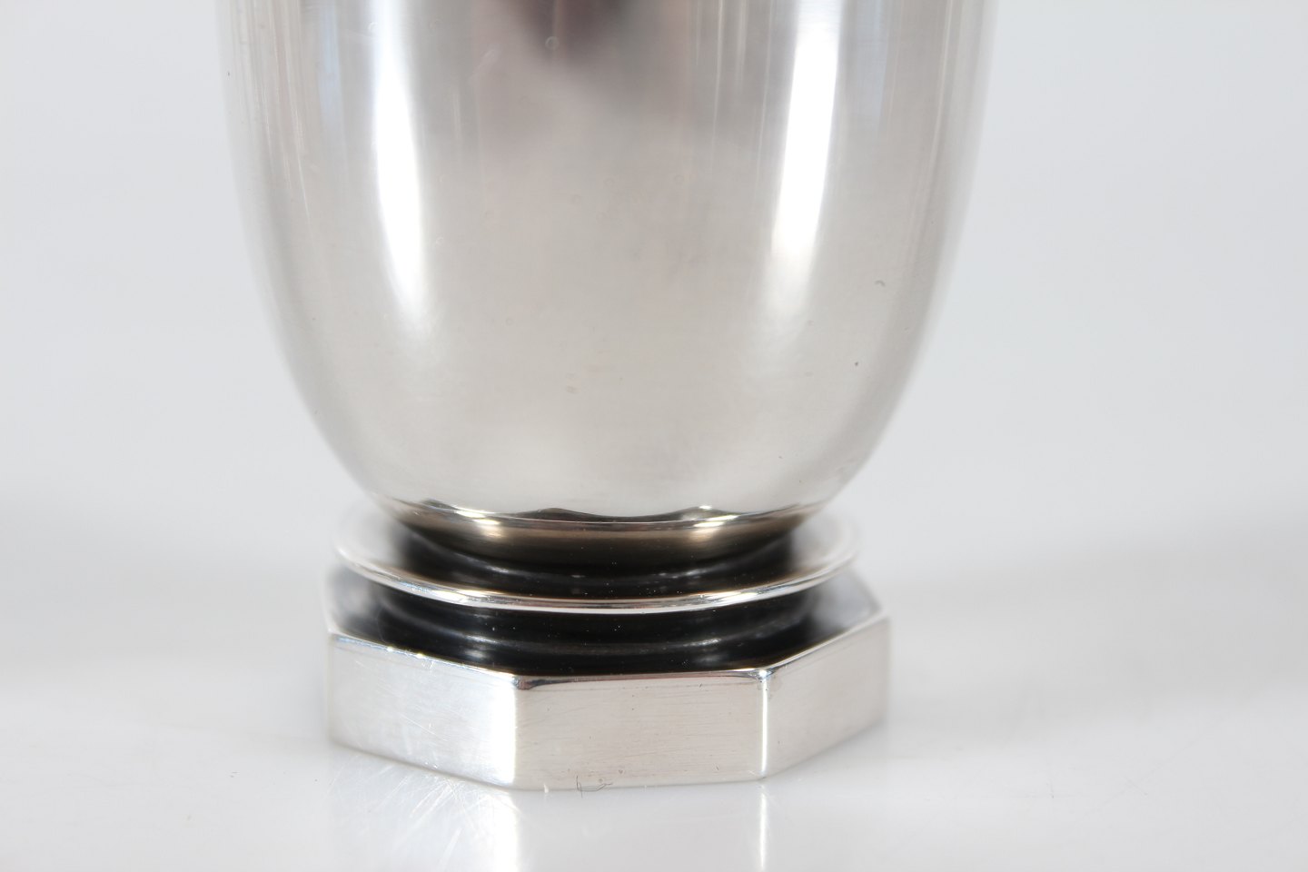 Georg Jensen Silver in Copenhagen Pyramid by Harald Nielsen 1927 Small vase and eggcup dessin no 648 Made of sterling silver 925s with stamp from the period after 1945 Diameter 5 cm Height 6 cm Very nice vintage condition