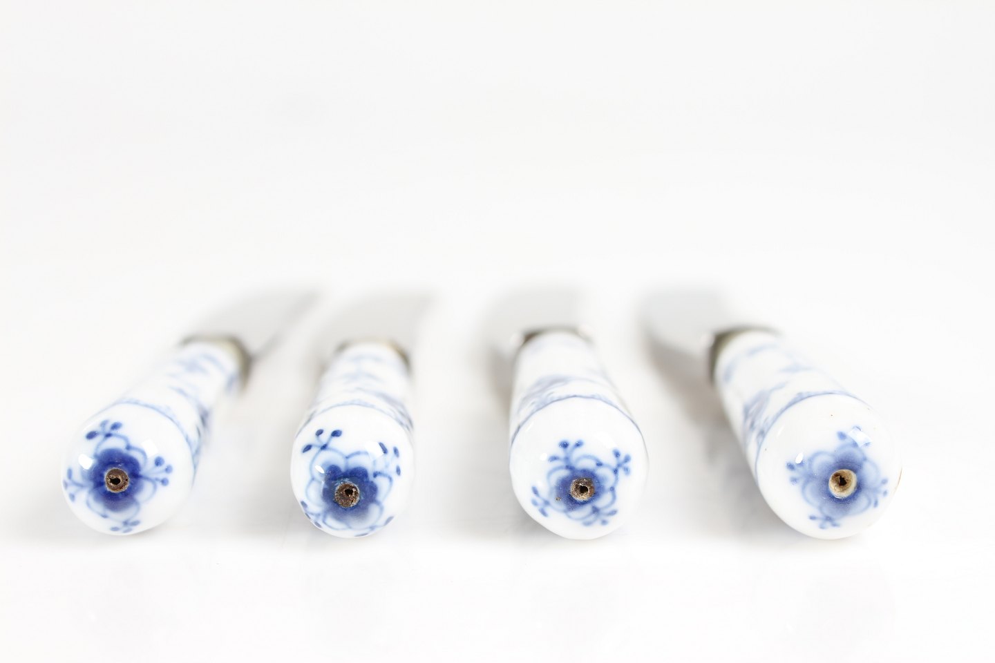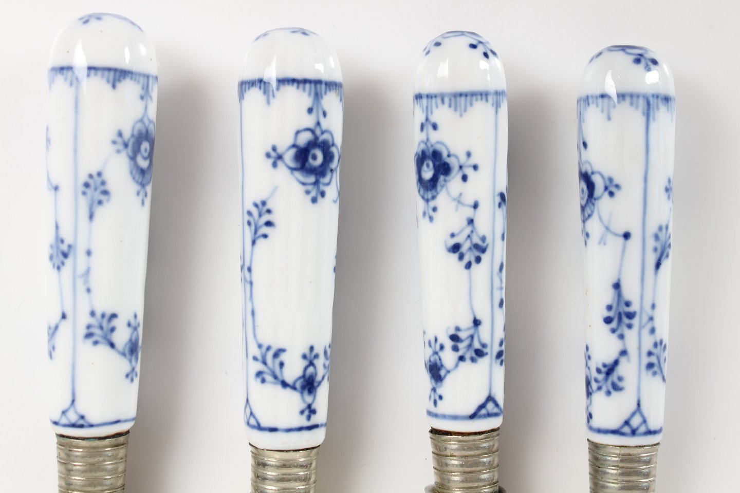 Royal Copenhagen Blue Fluted Plain Knifes with handles of porcelain Length 20.5 cm Very good condition, no chips or cracks