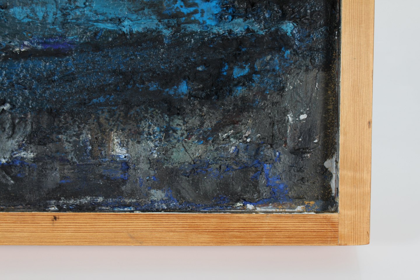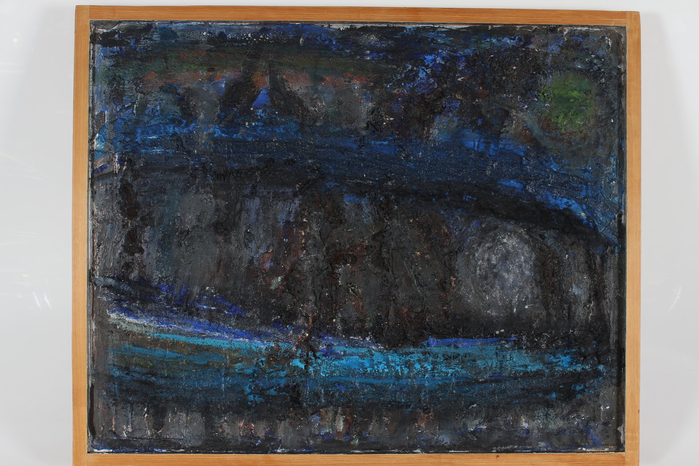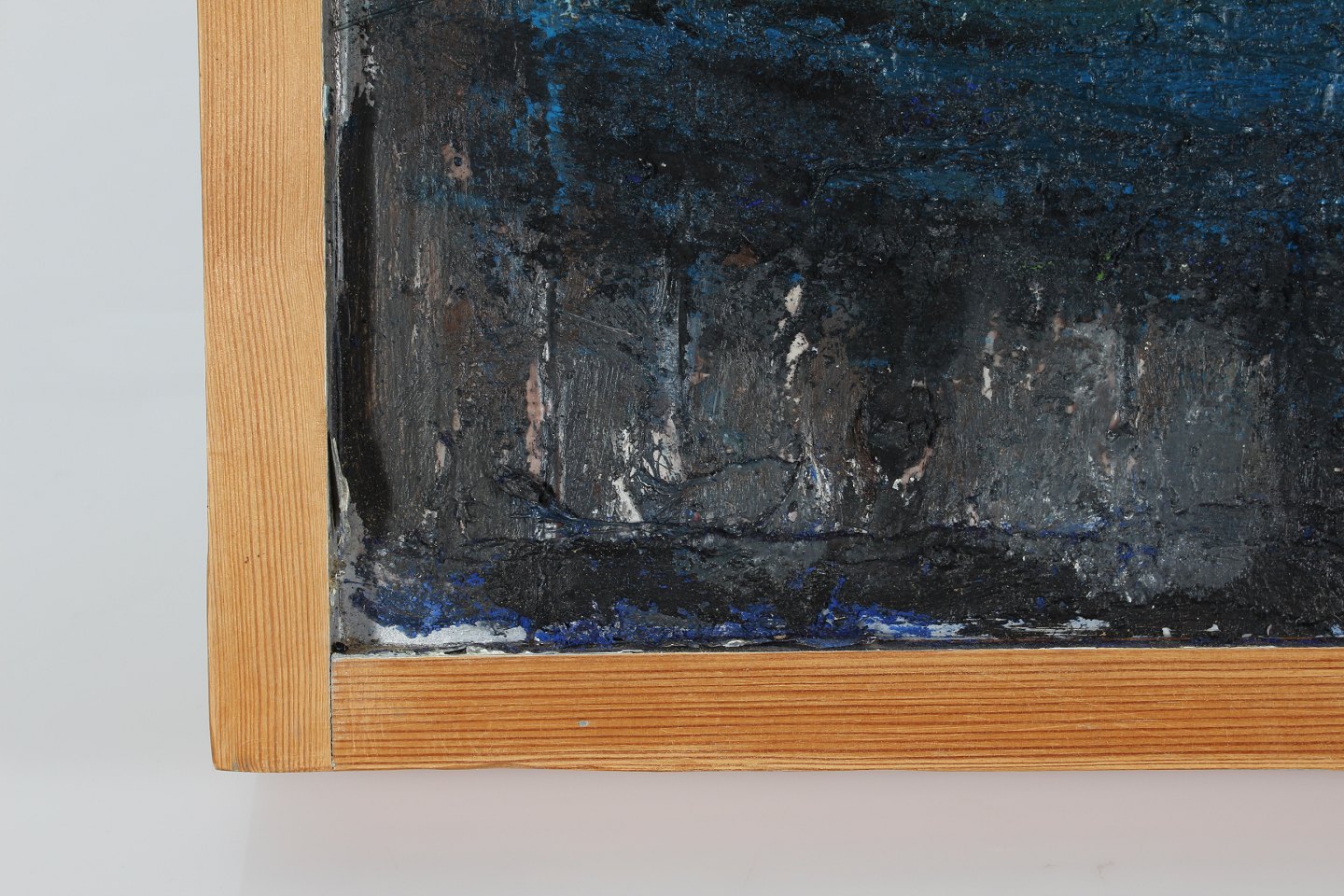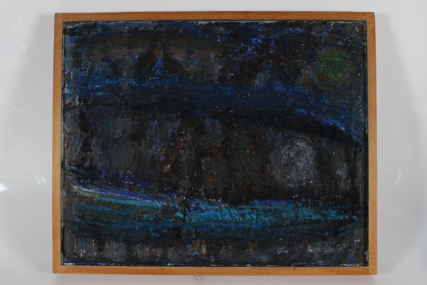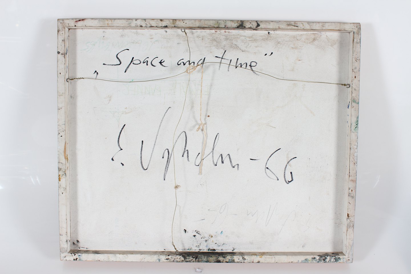Erik Nyholm (1911-1990) Oil painting "Space and Time" Sign. at the back E. Nyholm 66 Frame made of solid rustic pinewood Size incl. frame 80.5 cm x 76 cm Size excl. frame 66 cm x 61 cm Very nice condition