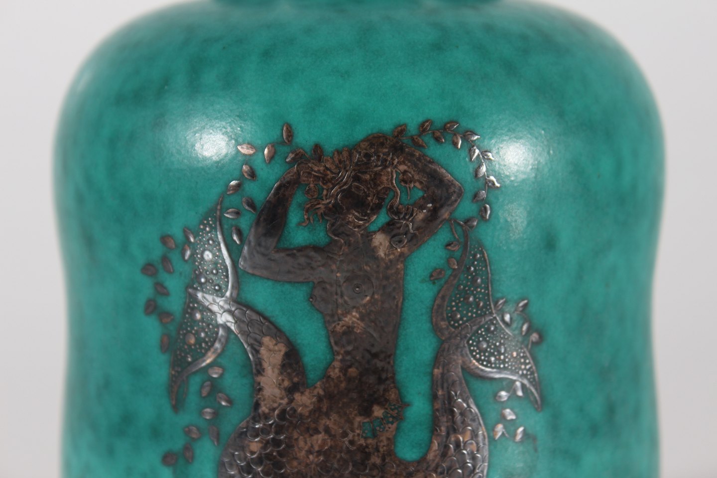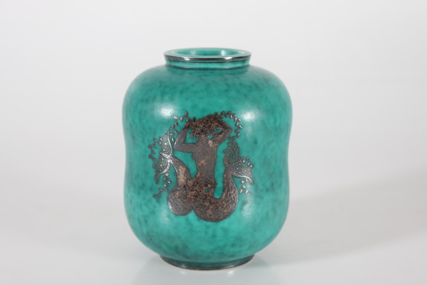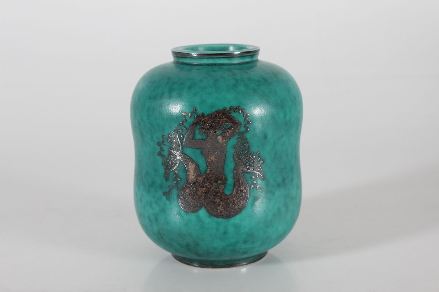 Stentøjsvase 1079 m/mat havgrøn glasur havfrue i