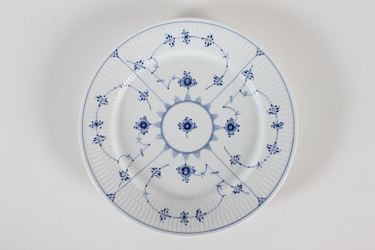 Antik Royal Copenhagen Musselmalet Riflet Stor middagstallerken nr. 627 med stempel fra perioden 2016-2019 Diameter 27 cm 1. sortering