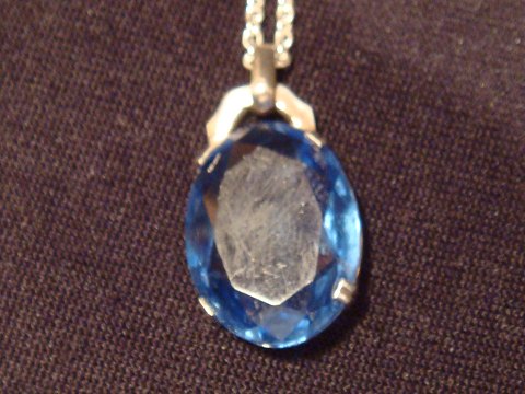 Sølv vedhæng med Aqumarin. samt sølv kæde. Stemplet 830 s