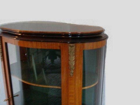 Glasvitrine med buget låge i rosentræ med intarsia, og Bronce monteringer.