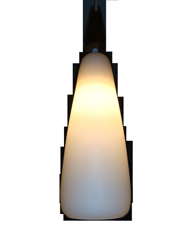 Lofts Lampe. i råvid glas og teaktræ top.