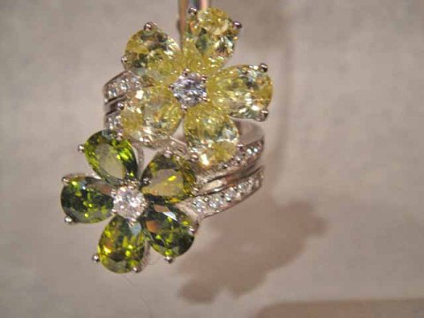 Ring. med krystaler i for som to blomster.. Sølv sterling 925s. Ring størrelse: 57