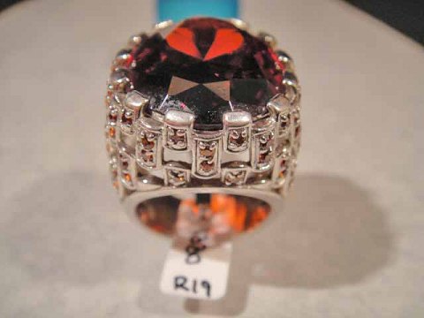 Sølv prydet med stor Rød krystal, siderne med Røde Brilliant slebet krystaller.