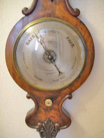 Engelsk kviksølvs banjo barometer fremstillet ca.år 1850. I maghogni kasse.