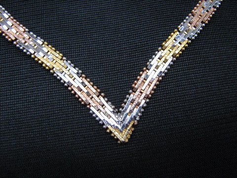 Trefarvet 18k Rødguld Hvidguld og Guld belagt sterlingsølv.