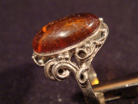 Sølv ring med rav. Sølv 925 sterling. Ring størrelse 57 Pris dkr. 175,-