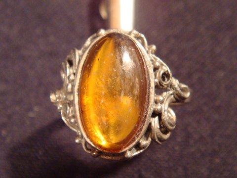 Sølv ring med rav. Sølv 925 sterling. Ring størrelse 57 Pris dkr. 175,-