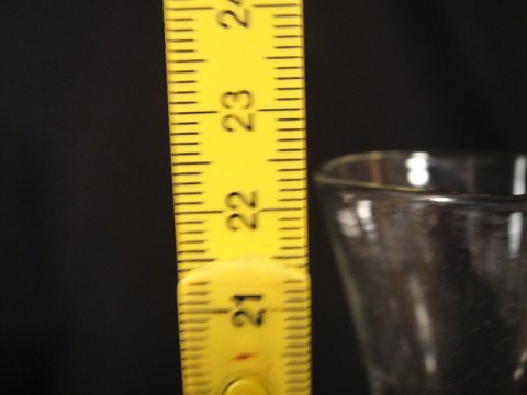 Snapse glas på høj stilk med kegleformet kumme.