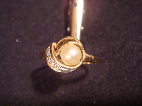 Ring med Perle og Brillanter. Guld 14k 585 Ringstørelse: 54 pris solgt