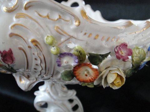 Pragt Opsats i 2 dele med sidende puti og rigt dekorert med pousserede blomster og blade.