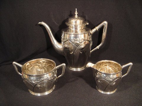 silver coffee pot - sugar and cream.